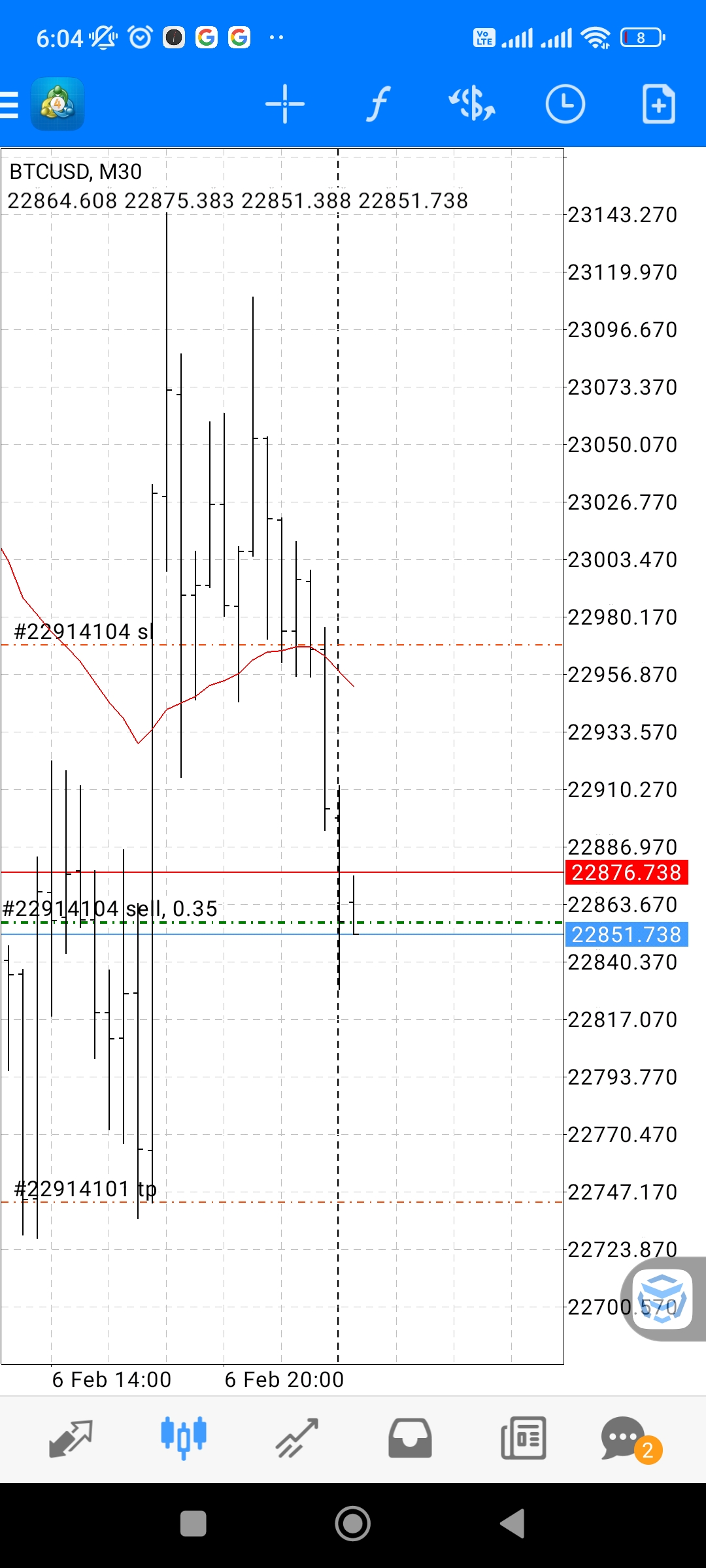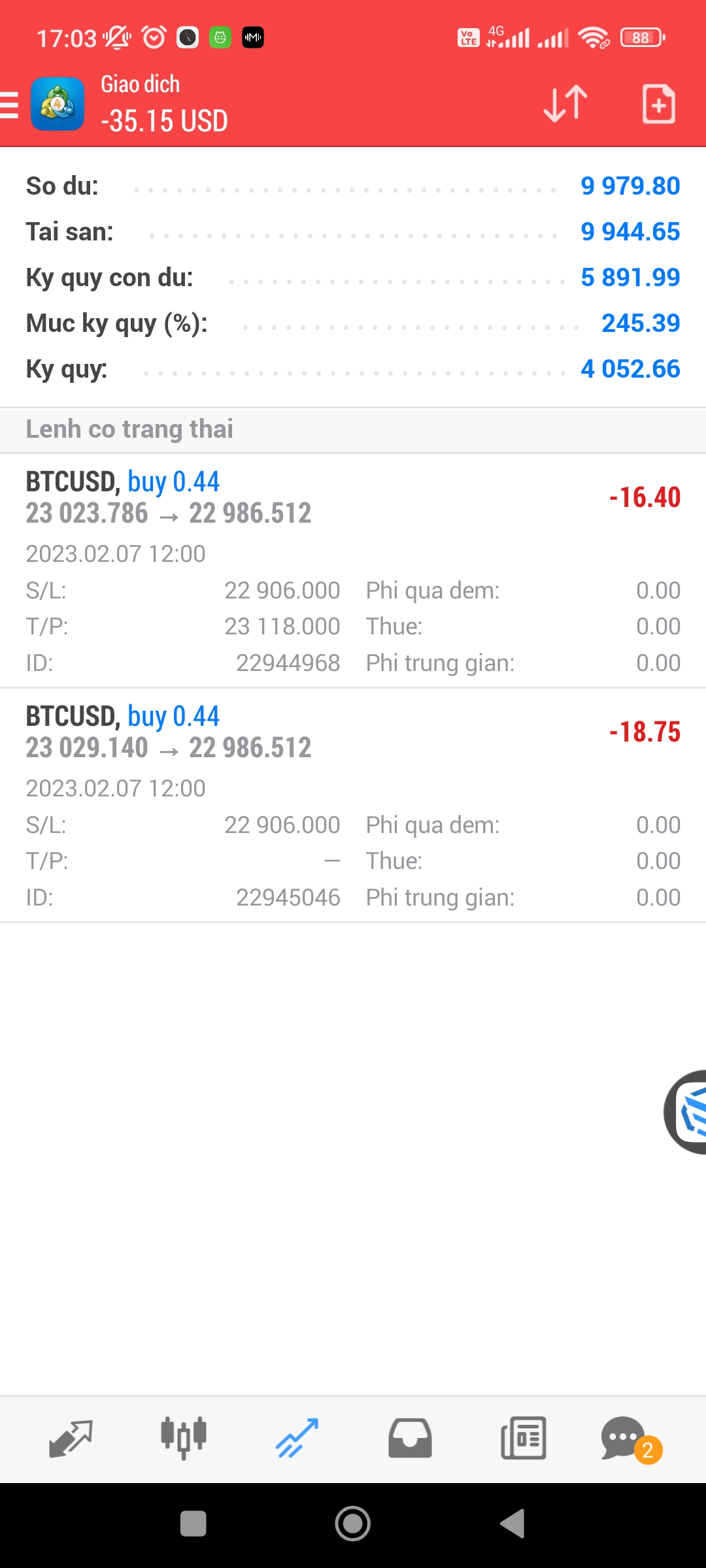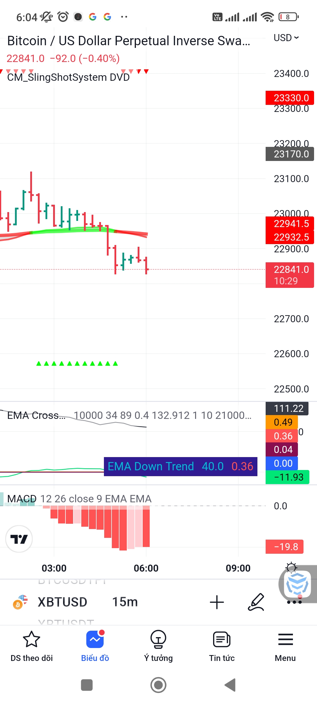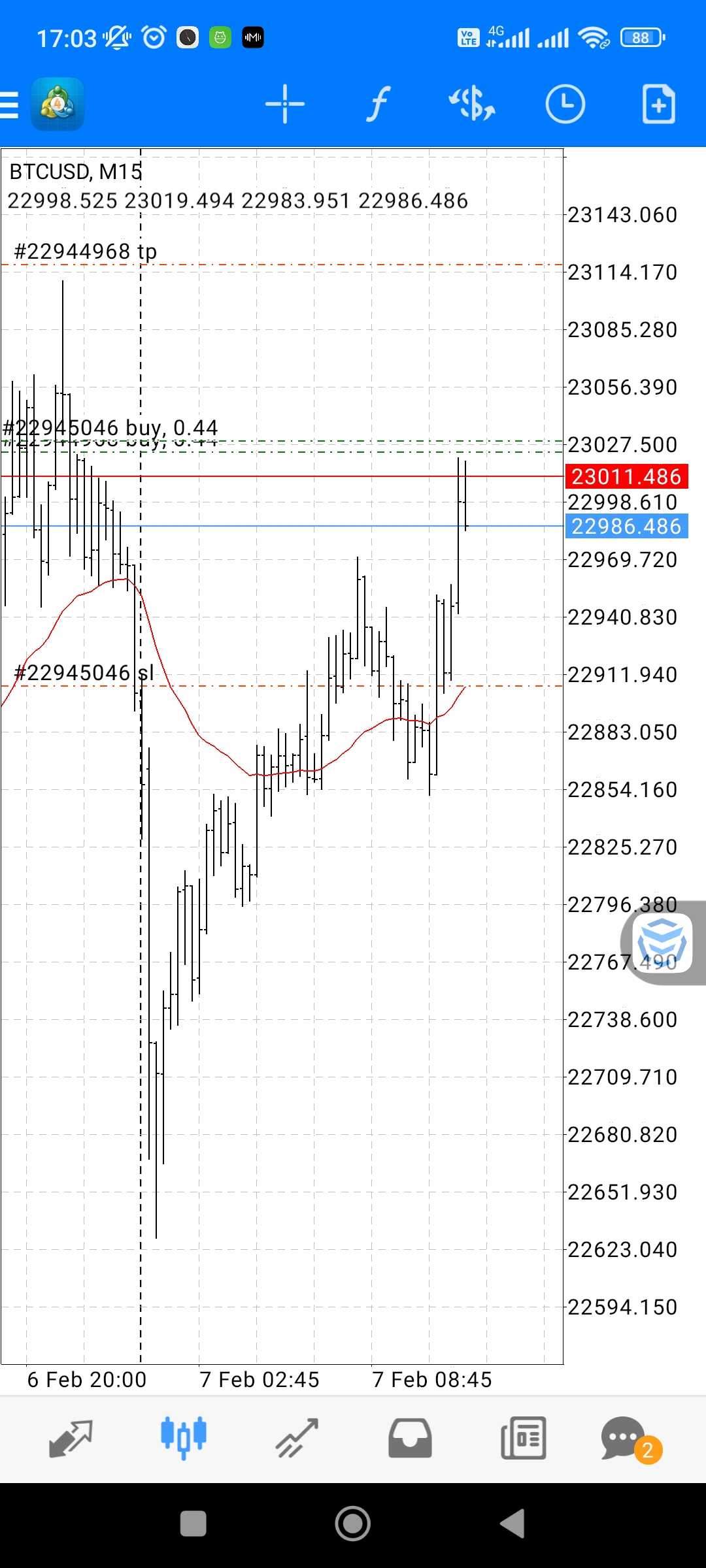 PP1: EMA cross - chỉ đánh cho btcusd khung M15. 2 lệnh #1 và #2 các bác thấy là lệnh EMA cross.