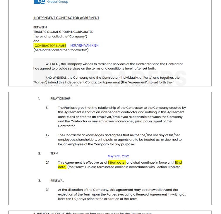 Các bác có thể cho em xin mẫu hợp đồng hoàn chỉnh của các bác đã gửi KYC MFF được không ạ. Em tìm hiểu thì thấy đa số toàn ghi 1 bên như thế này. Em nghĩ là phải xóa phần bôi vàng rồi chèn thay thông tin vào đó chứ.