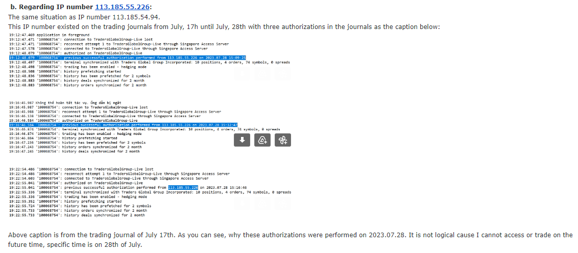 Đại để em phát hiện ra với IP đầu tiên bắt đầu xuất hiện từ trading journals vào ngày 17/7, liên tục xuất hiện đến ngày 31/7 là ngày xuất hiện cuối cùng.