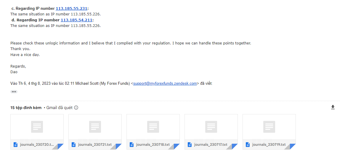 Sáng sớm nay MFF anh dai Michael đã phản hồi cho em và em đã ăn 1 cú ban vì vấn đề IP rồi.