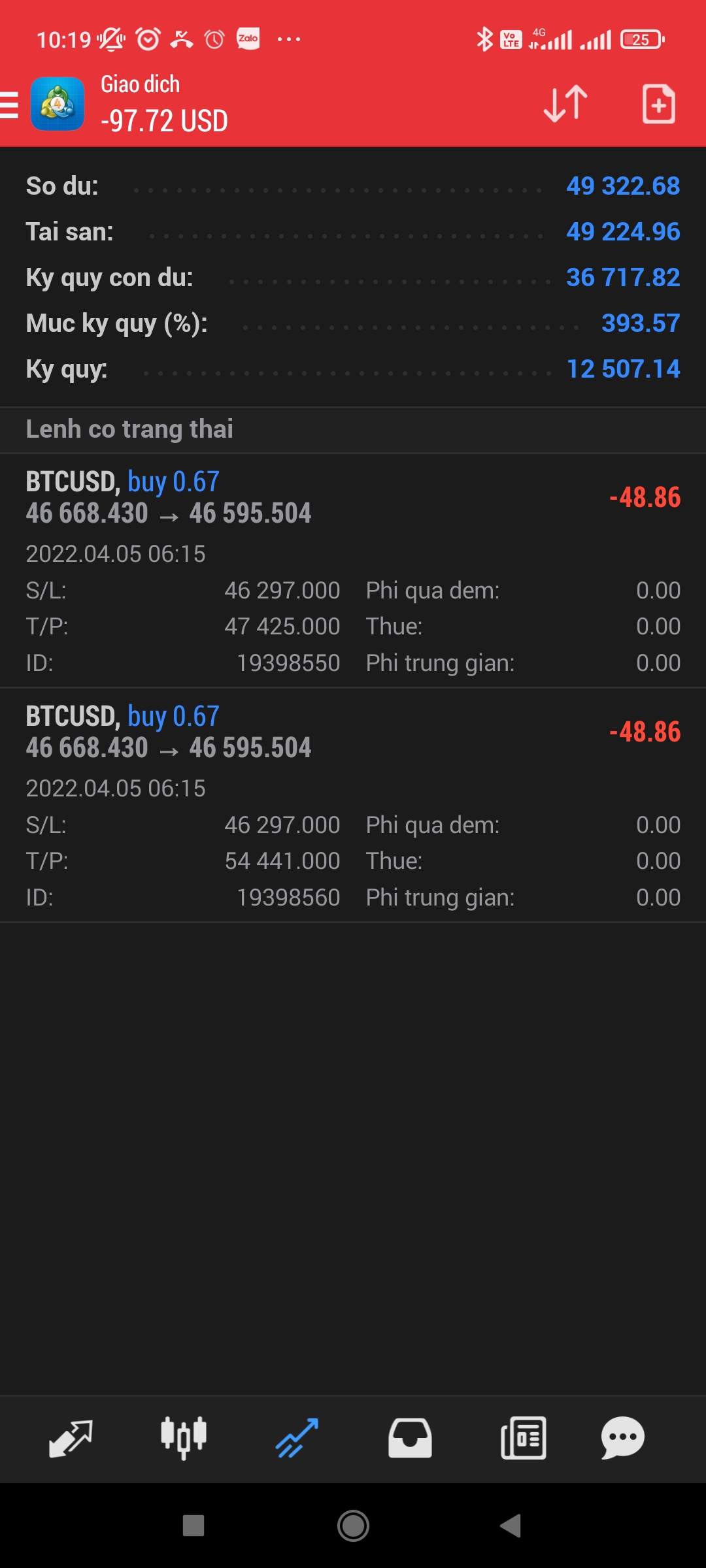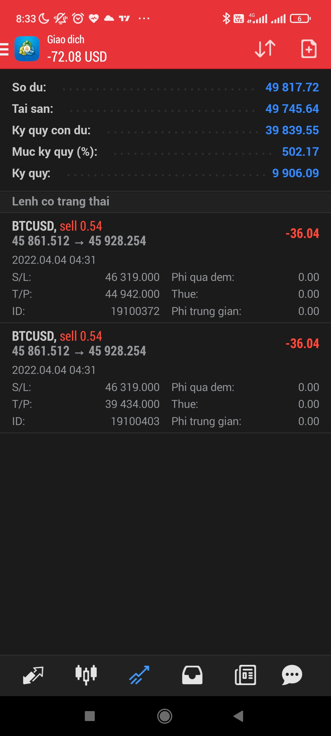 Nó còn có 1 ngày nữa là hết thời hạn vòng 1, trong khi đang âm đến 8%. Balance còn có 46.2k.