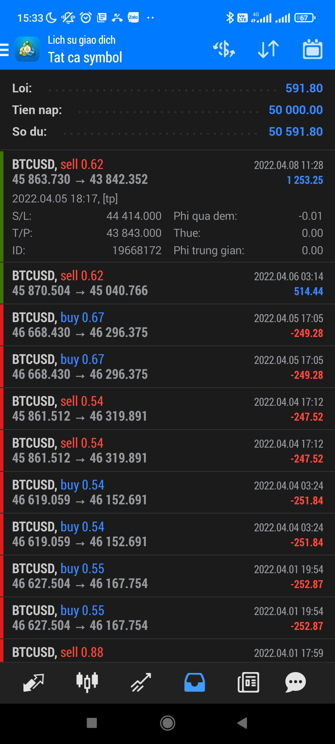 Vậy là em quyết định chơi quả may rủi xem thế nào đằng nào cũng trượt. Cuối cùng thành ra ăn may nuốt được hơn 4.2k profit và balance thành dương luôn.