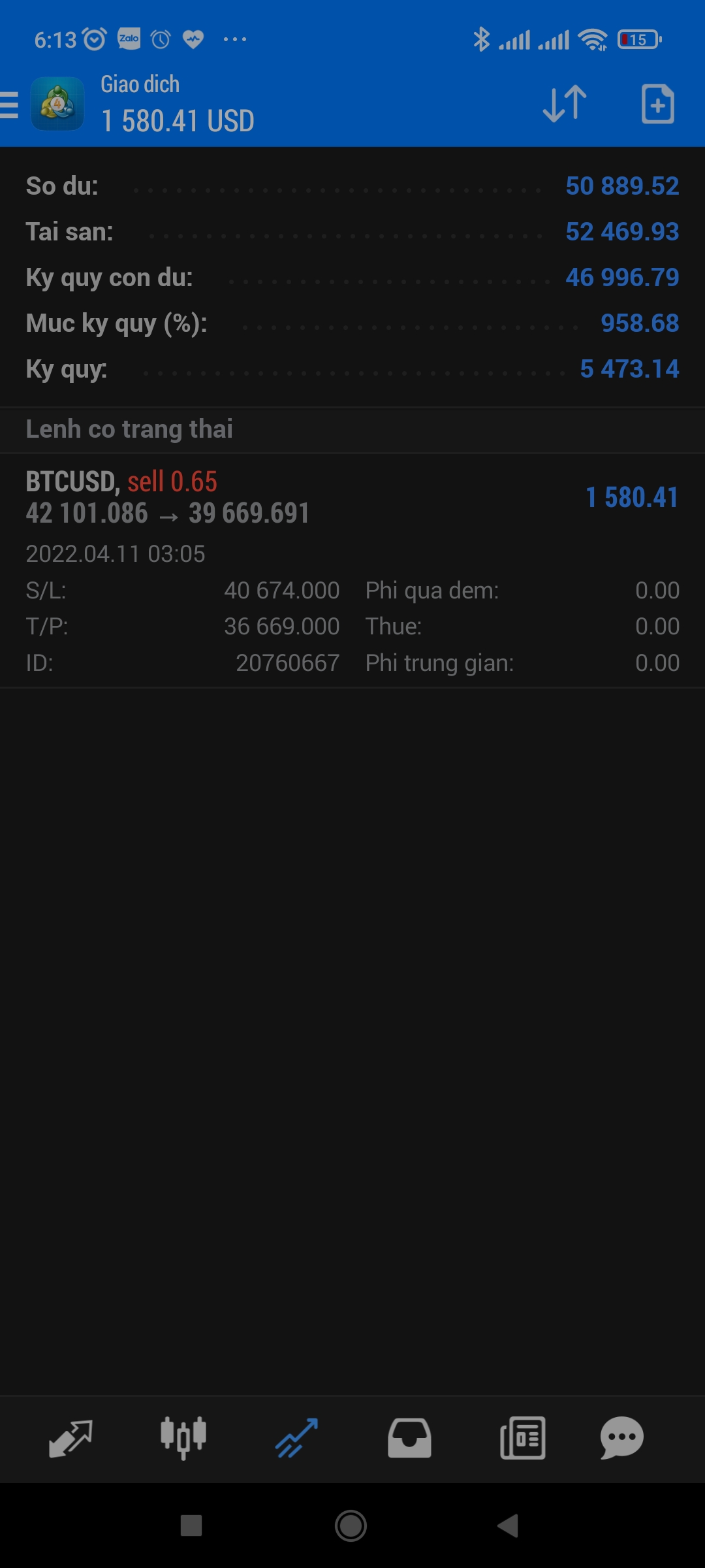 Rất nhanh lệnh 1 đã cắn TP được 2R. Giờ giữ tiếp lệnh còn lại thôi các bác ơi.