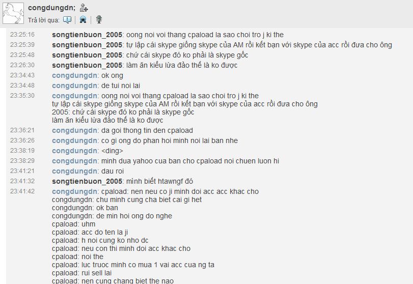 Còn vấn đề ổng kêu mua acc ổng về từ tháng 2, sao tháng 3 mới phát hiện ra, vì skype nó giả tinh vi quá, lại là diệp tết nhất ai đi làm net, ở nhà ăn nhậu chứ :))
