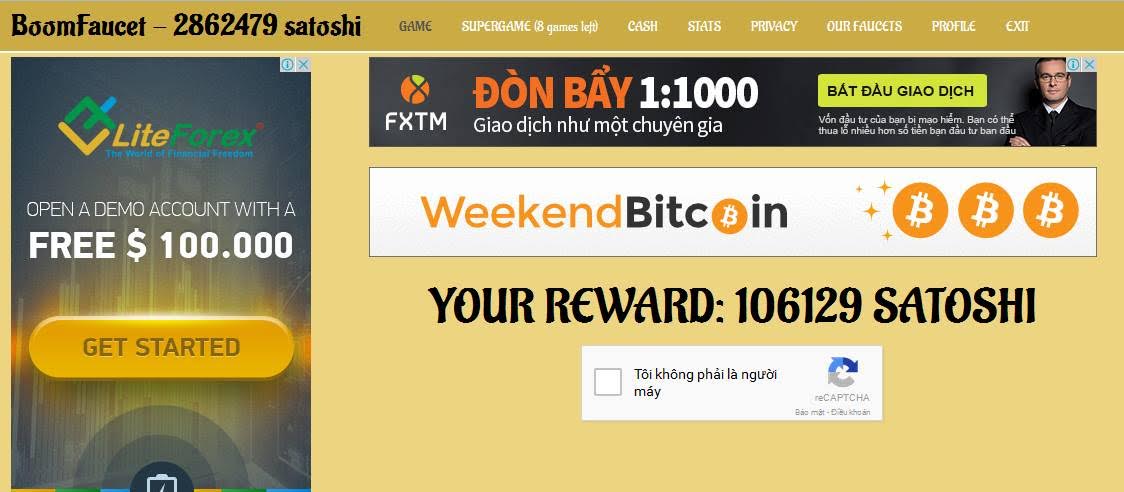 Cứ 30 phút vào nhận bonus. mỗi lần nhận từ 1k đến 6k satoshi.