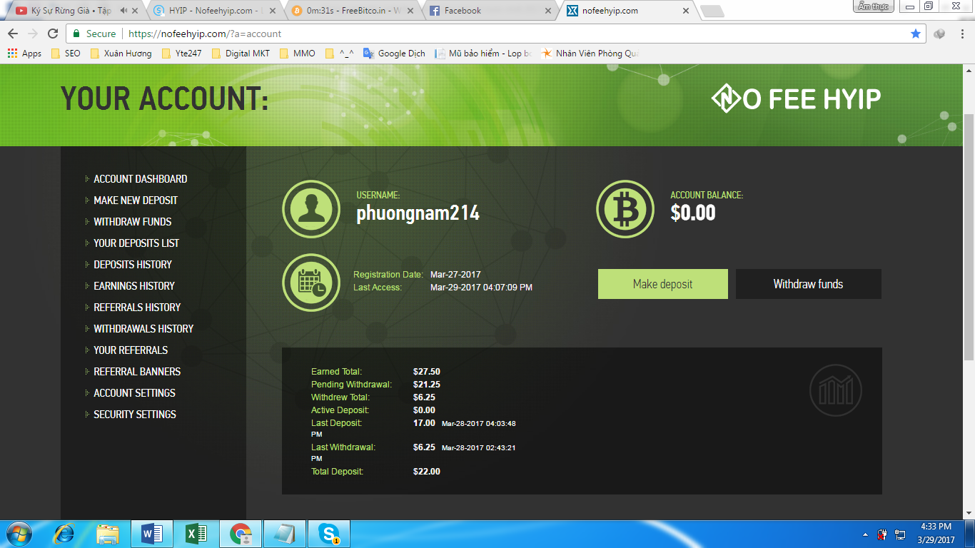 Withdraw to zozo278 from nofeehyip.com..