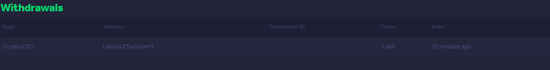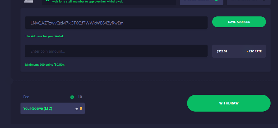 min rút : 500 coins rút qua LTC, BTC,ETH , 5000 coins qua paypal .