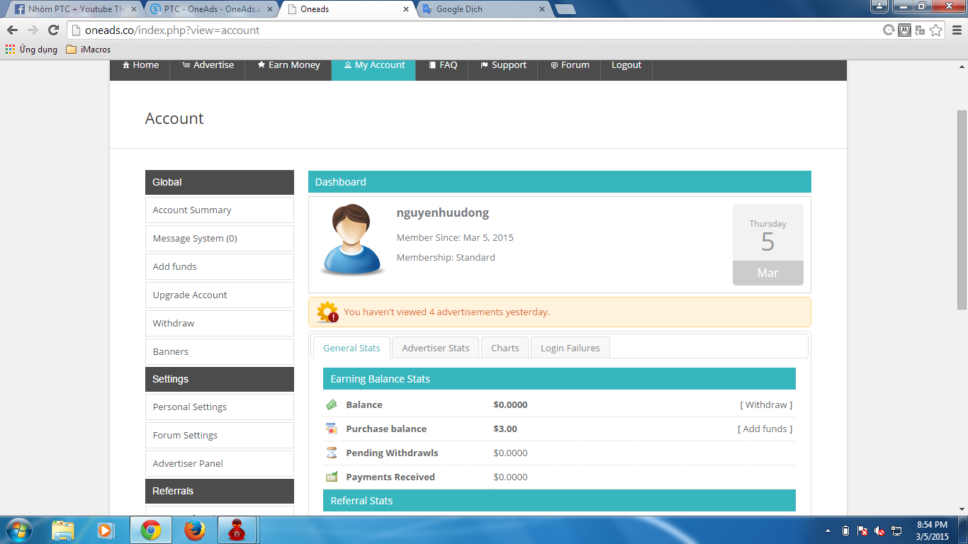 OneAds - OneAds.co . Bonus 3$ in PB