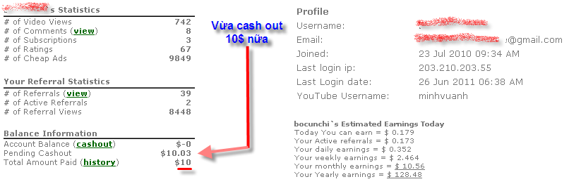 Mấy hôm trước mình đã post một proof 10$ từ paid2youtube, sau đợt paid2youtubebị trục trặc, đến hôm qua mình lại vừa được rút thêm 10$ nữa từ paid2youtube . Xin post lên chia sẻ cùng các bạn.