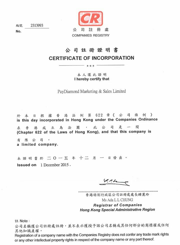 - Trụ sở VĂN PHÒNG PAYDIAMOND tại HONG KONG: