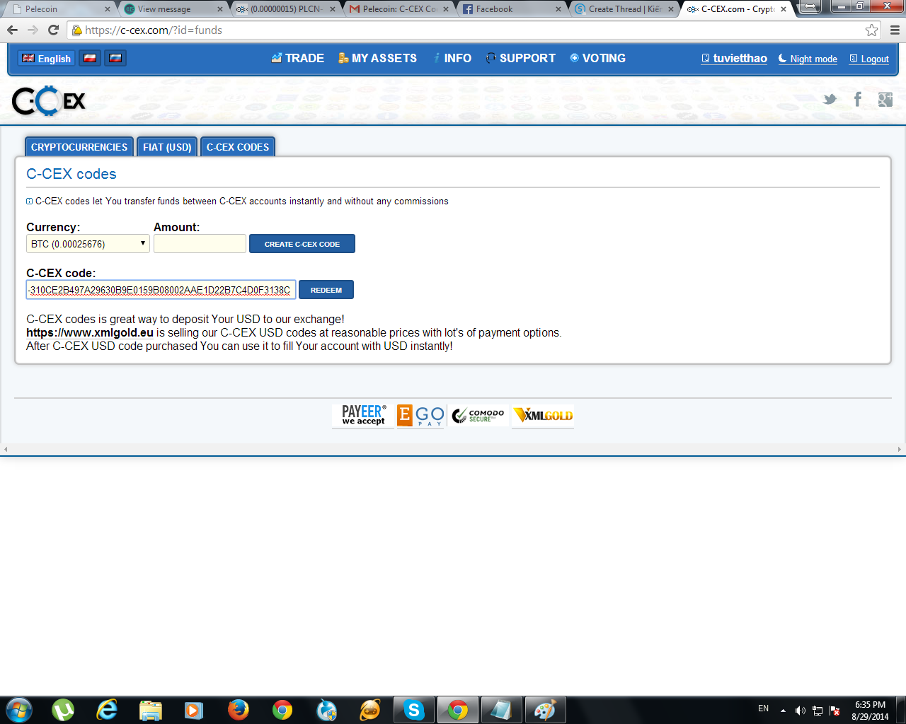Sau đó bạn chỉ cần qua c-cex paste code vào và bấm redeem là xong