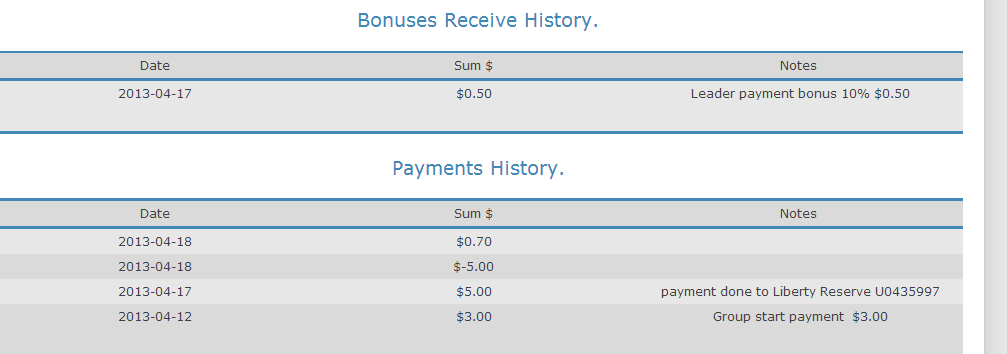 cái này mình chưa gặp bao giờ nên hỏi các bác.Gr minh mới tạo nhóm mình k gõ id chủ. mà cộng các id con lại thì tổng mới 7.3412 mà mình đã đc thanh toán 5$ 1lần rồi. chả hiểu sao sáng nay vào thấy trong static những 7.1957 là sao nhỉ. phần Payment History mình chẳng hiểu gì cả