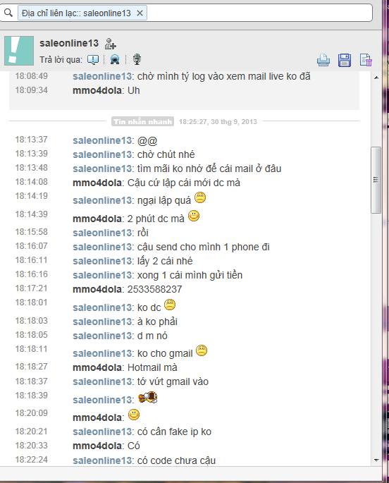 tiện thể mình chưa unban nên không thể nói là lộ ID được nhá mình để ý đến chủ nhật hoặc thứ 2 các bác đừng login vào acc thì sẽ không bị scan ra pass được vì 2 acc unban của em đăng nhập ngay lúc 9h ( lúc đấy mình chưa bị change LR nhá ) nhưng sau một hồi chơi game vào kiểm tra lại lúc này khoản 10h30 thì đã bị đổi LR của 2 thằng cờ hó nào không bít ...may mắn là hôm nay mega pay sớm không thì ... => rút ra kết luận không nên login vào tài khoản vào chủ nhật và thứ 2 chắc chắn có nội gián trong mega rồi anh em à :binhsua85:
