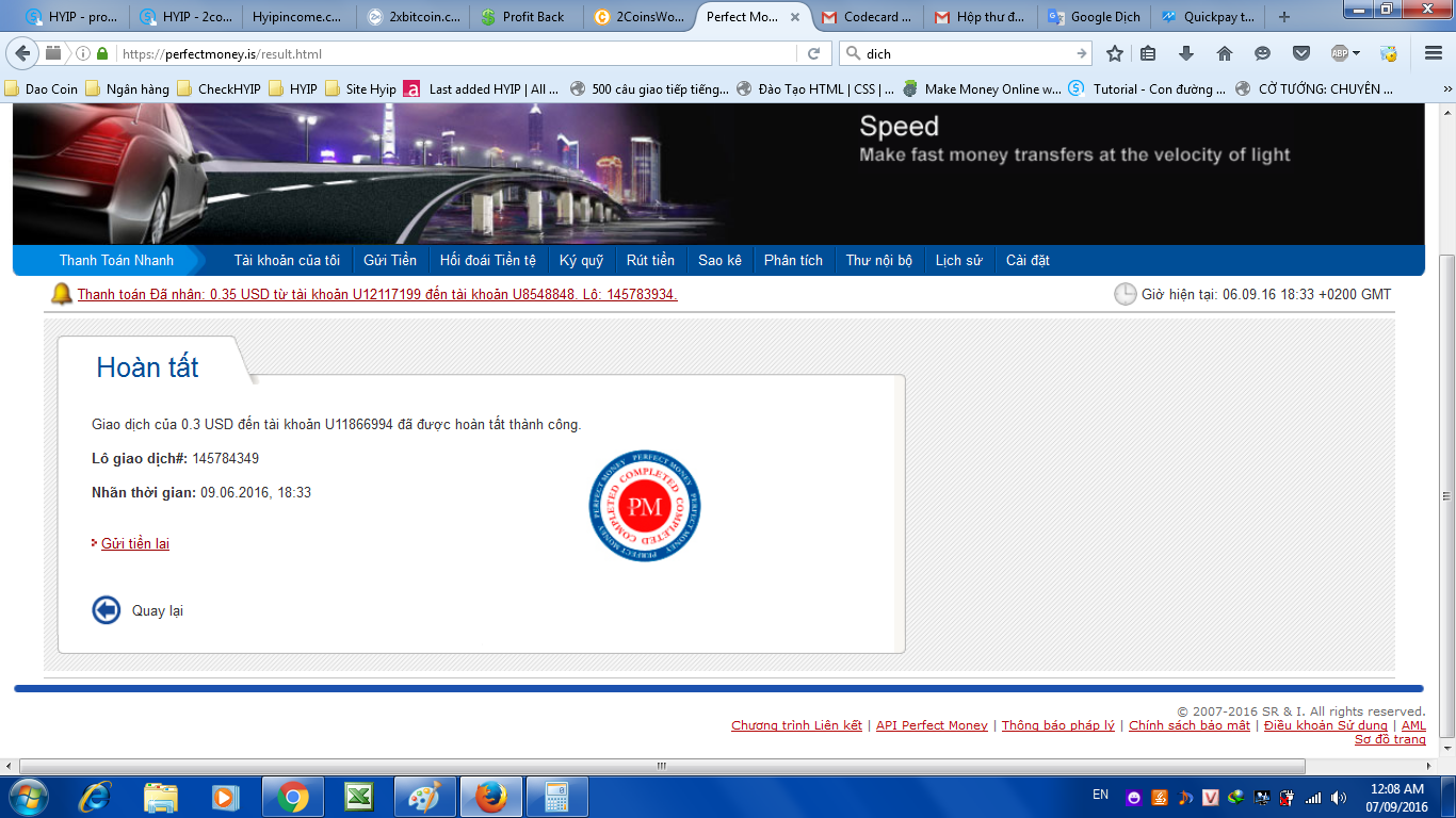 có dep tiếp ko cậu. Tối Pm mình đưa site sắp ra ngon lắm1/2: The amount of 3.15 USD has been deposited to Perfect Money account. Date: 06:09 07.09.16. Batch: 145823688.