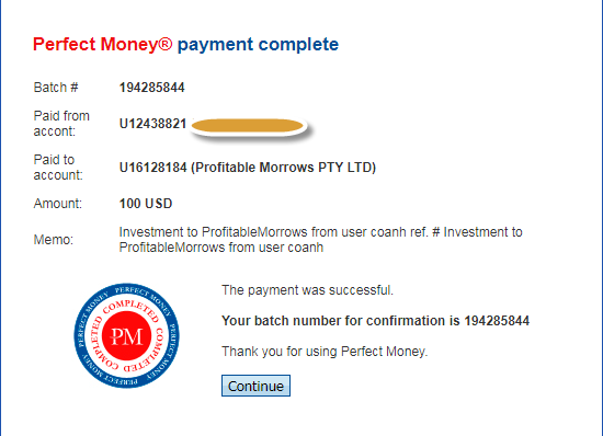 The amount of 9.05 USD has been deposited to your account. Accounts: U16128184->U4888473. Memo: API Payment. Withdraw to PBHYIPSINFO from ProfitableMorrows.. Date: 10:42 09.01.18. Batch: 201206081.