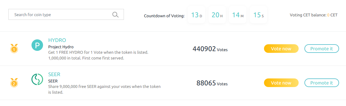 3/ Vào link này để vote cho Hydro : https://www.coinex.com/vote