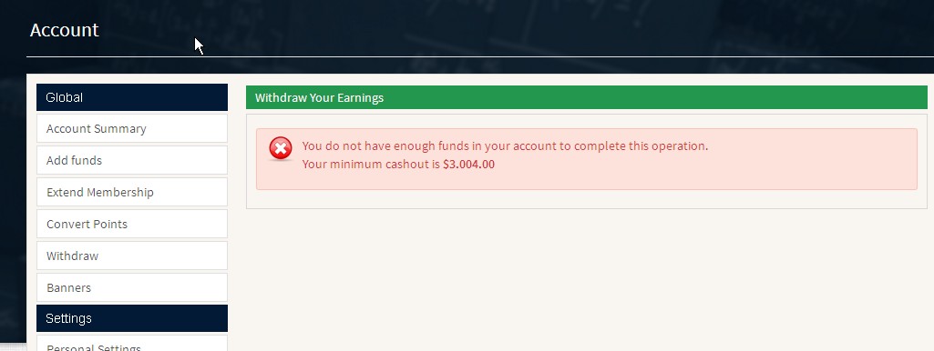 The first minimum payout is at $2.00. This will increase by $1 until it reaches a fixed minimum of $10. From then all minimum payment amounts that you will need to have before requesting your payments will be $10.00 From the amount paid, a fee can be deducted depending on the payment processor you use. All payments will be made by our staff to our members in 2 business days upon request.