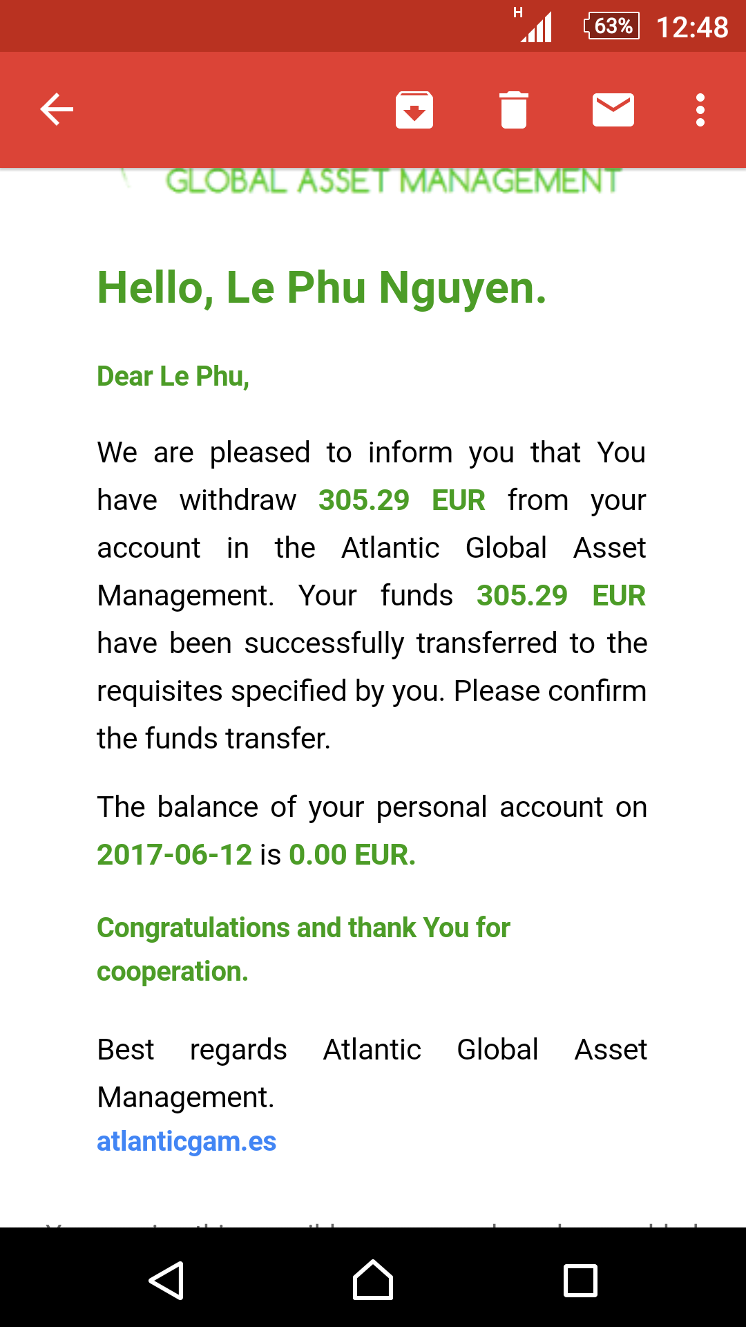 các bác không để ý quy định ah, trong mail cũng có ghi khi rút tiền rồi đó 3-7 ngày LÀM VIỆC, thứ 6 này mới có 4 ngày làm việc thôi nhé, thứ 7-cn không tính nha. Dạo gần đây thì họ sẽ pay vào t2-3 tuần sau. yên tâm đi nhé.