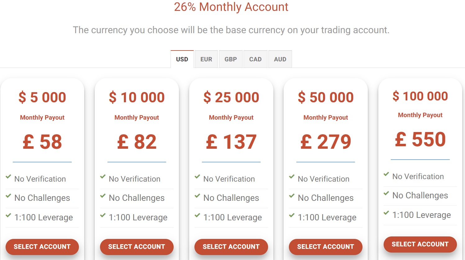 giới hạn sụt giảm tài khoản ngày là 5%, giới hạn sụt giảm tài khoản tối đa 10%, nhận thanh toán sau 28 ngày từ khi nhận tài khoản, được chia 26% trên tổng lợi nhuận đạt được, gói này có giá rẻ hơn do chia lợi nhuận ít hơn
