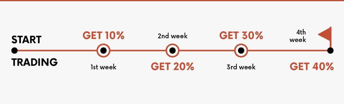 gói này đòi hỏi trader phải có lợi nhuận hàng tuần để nhận được tối đa 40%/tháng.