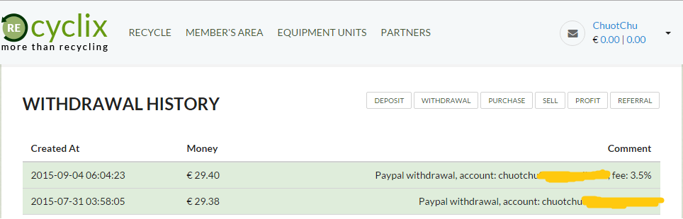 In case of refusal to provide these data, the payment will be refunded to the debit/credit card and the user’s account with Recyclix will be closed.
