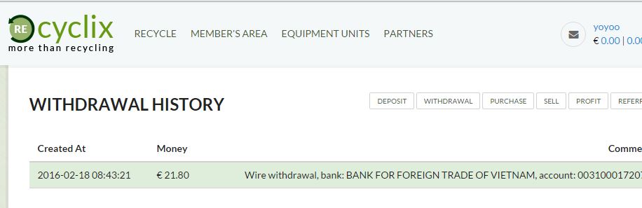 ko đầu tư cũng rút dc nhé. mới rút dc 21,8euro qua vcb đây. nhưng mà rút xong cũng nghỉ chơi vì hết tiền tái đầu tư r.