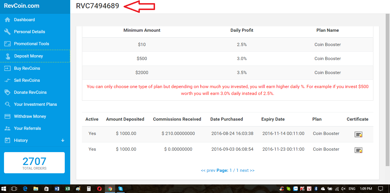 Cuối tuần rảnh rỗi sinh nông nổi, đầu tư thêm 1000$ nữa = 2000$ vào RevCoin. Hy vọng kiếm thêm tí cháo.