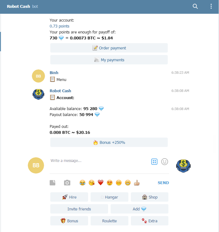 Cám ơn bạn nhưng làm cách nào để tăng poits để rút tiền vậy, người khác cài ứng dụng telegram muốn có robot cash phải nhấn vào link người khác mời đúng không, mình muốn mời bạn mình thì nó phải nhấn vào link mình gởi t.me/RobotCashBot?start=cxVLDnIq thì mới xuất hiện robot cash trong ứng dụng ?