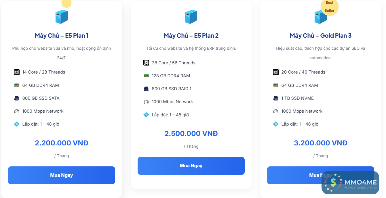 Công ty TNHH VPSMMO chuyên cung cấp Máy chủ Server, VPS, Cloud Chính hãng được đặt tại các Trung tâm dữu liệu FPT,CMC IDC tại HCM,HN và đã đăng ký với Bộ Công Thương, đảm bảo tính pháp lý và yên tâm cho khách hàng khi giao dịch.
