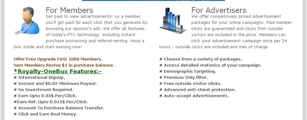 Chú ý: Hình thức đầu tư có rủi ro. Các nhà đầu tư phải cân nhắc kỹ trước khi ra quyết định! http://www.royalty-onebux.com =========================================== http://www.bigrockclicks.com/