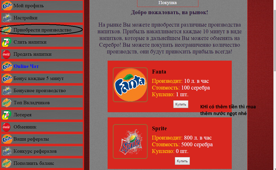 New sản xuất nước ngọt, rút tiền về ví (bouns 5 phút)