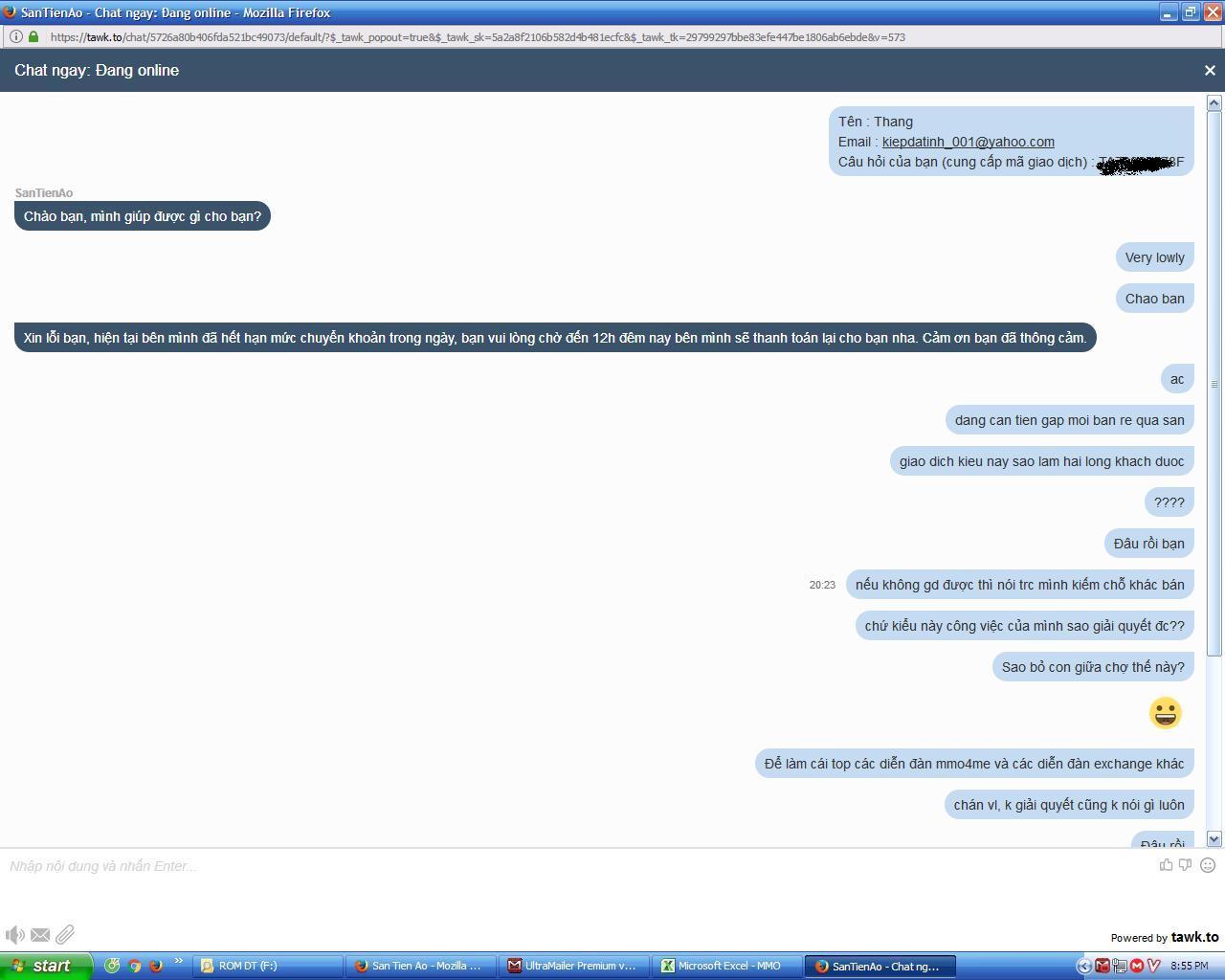 Nếu không đủ tiền hoặc hết hạn mức thì phải thông báo trước khi mình chuyển tiền giao dịch, hoặc chí ít cũng hỗ trợ chuyển lại PM cho mình để mình bán sàn khác để giải quyết đc việc của mình chứ đàng này chơi theo kiểu "Bỏ con giũa chợ, sống chết mặc bay" thế này sao có thể tồn tại được?
