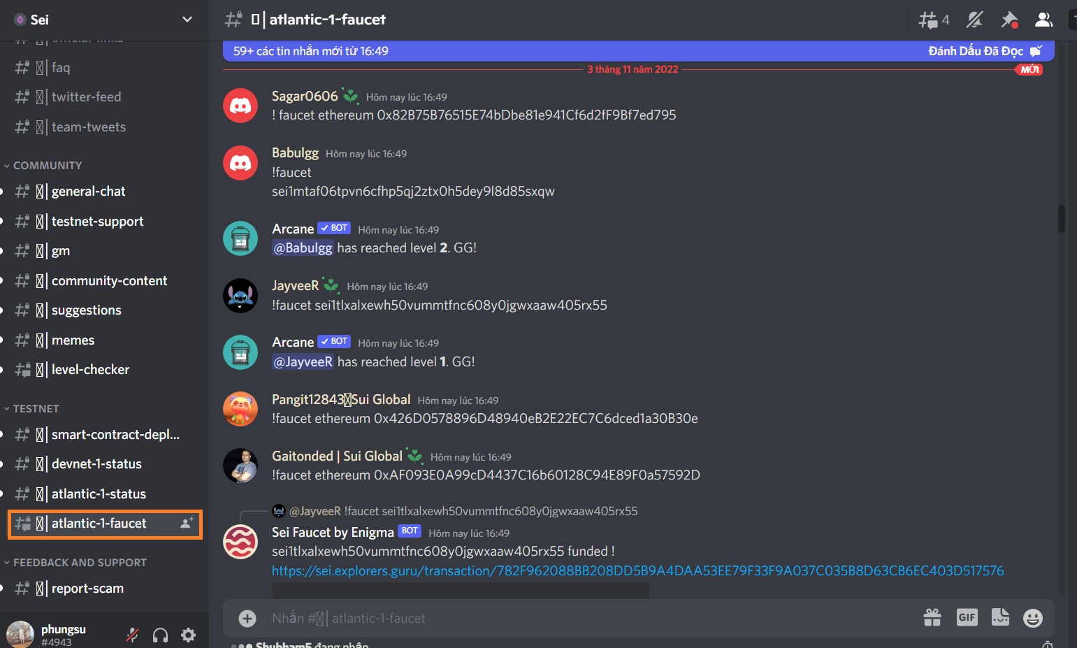 Sau khi join discord và xác minh các bạn tìm đến #atlantic-1-faucet.