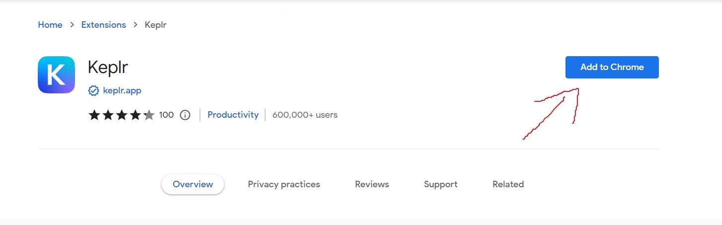 Cài đặt ví Keplr bằng cách cài đặt tiện ích mở rộng trên chorme click tại đây