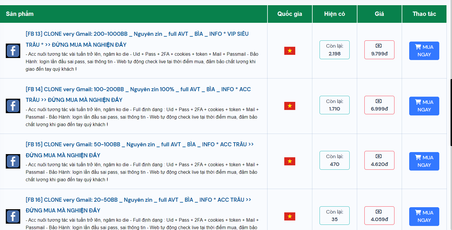 Buy & Sell Sell gmail 3k - Gmail thuê 800đ - hotmail 75đ - Facebook 2k - twitter 5k - zalo 50k - ..... phục vụ anh em mmo - Sellaccount24h.com - banking ACB