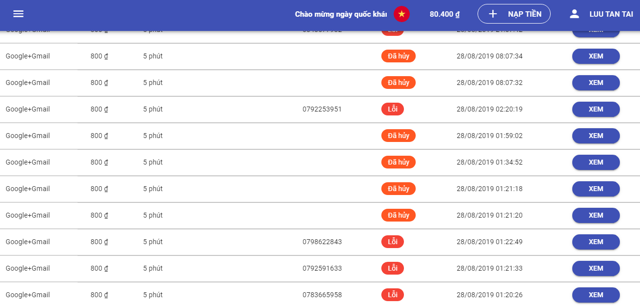 bạn chọn đúng dịch vụ thì sẽ không bị thế nhé,mình thấy bạn toàn chọn dịch vụ khácadmin có thể refund cho mình đc ko, tài khoản 0365533024, mình nạp để tạo gmail nhưng cả 3 mạng đều ko dùng đc hoặc bị out stock do hết số