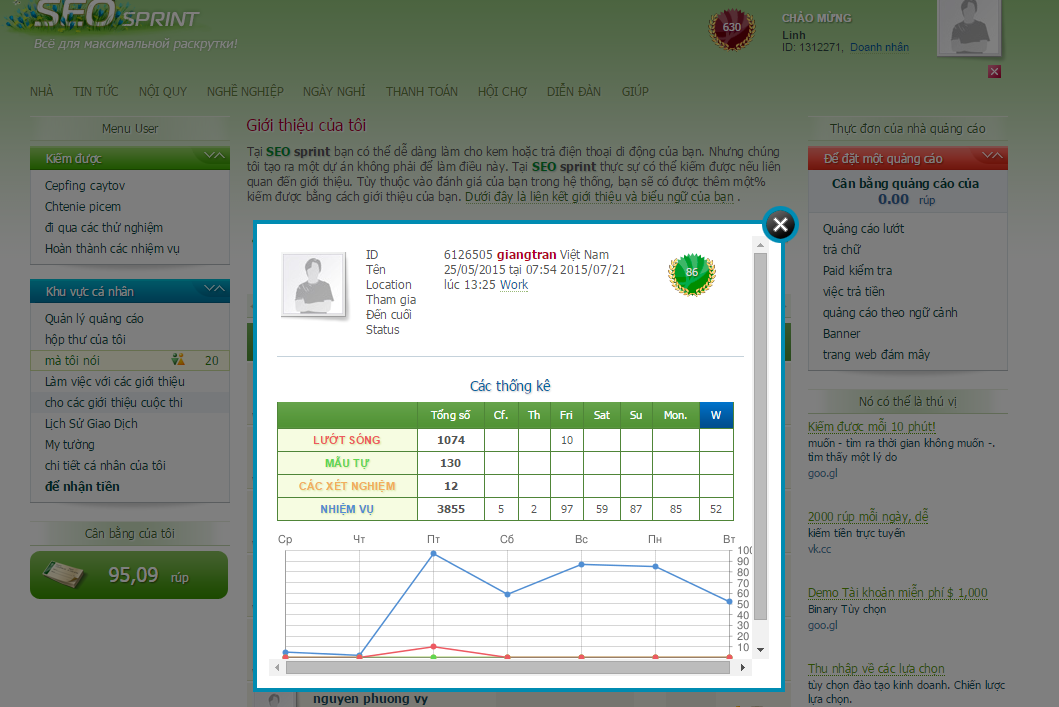 mình thấy trong mục hoàn thành nhiệm vụ có cái mời Ref SEO ấybạn muốn đăng bài ở đau