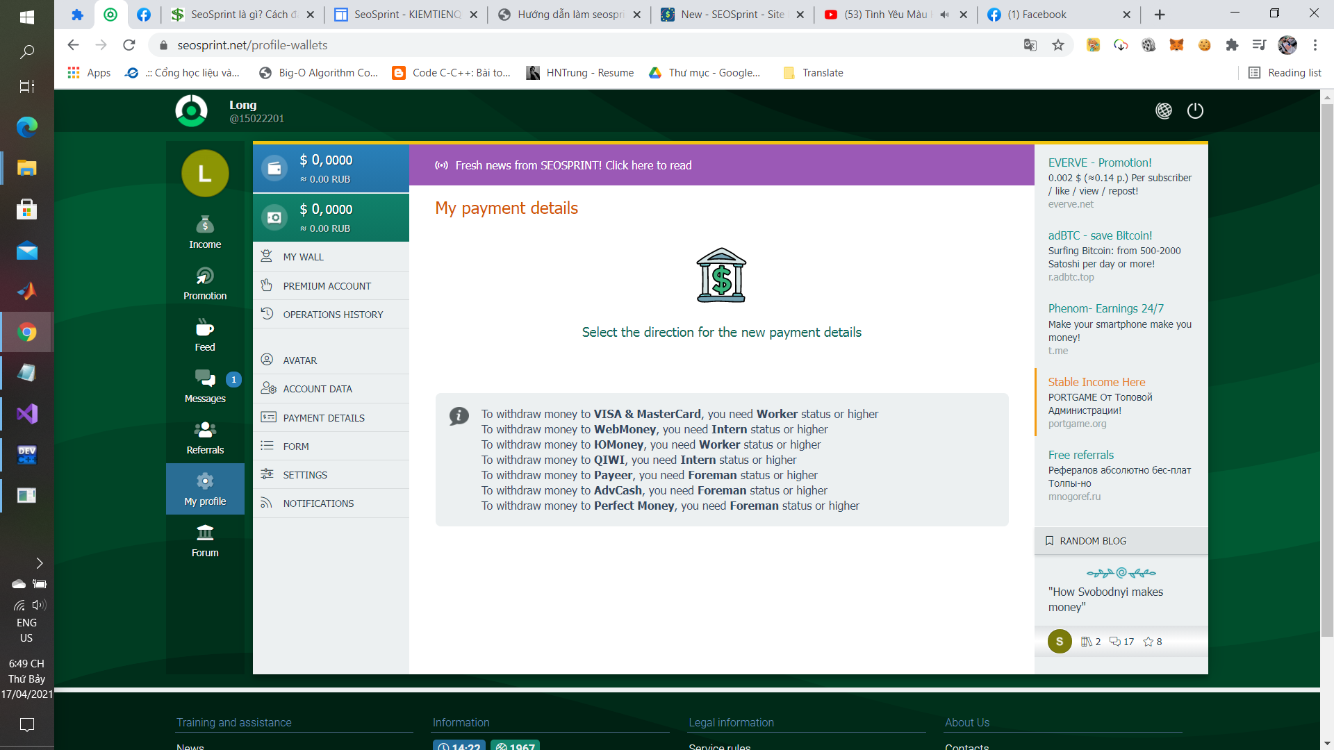 New SEOSprint - Site làm nhiệm vụ đơn giản của Nga ngố