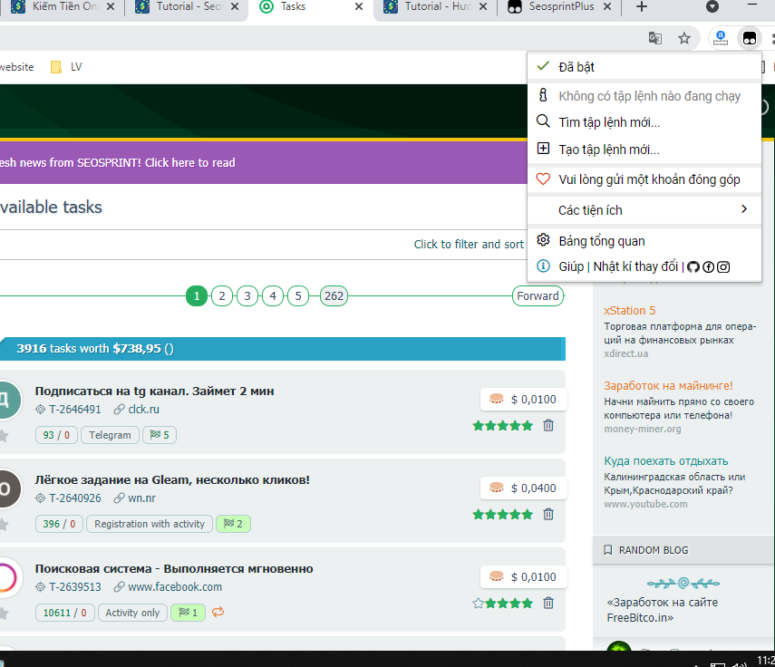 tool này có tự động làm nv ko bBạn tải TamperMonkey trong store của trình duyệt về, vào link sau bấm nút install là cài xong rồi bạn. Giao diện seosprint trang earn-task của bạn sẽ tự update sau khi reload.