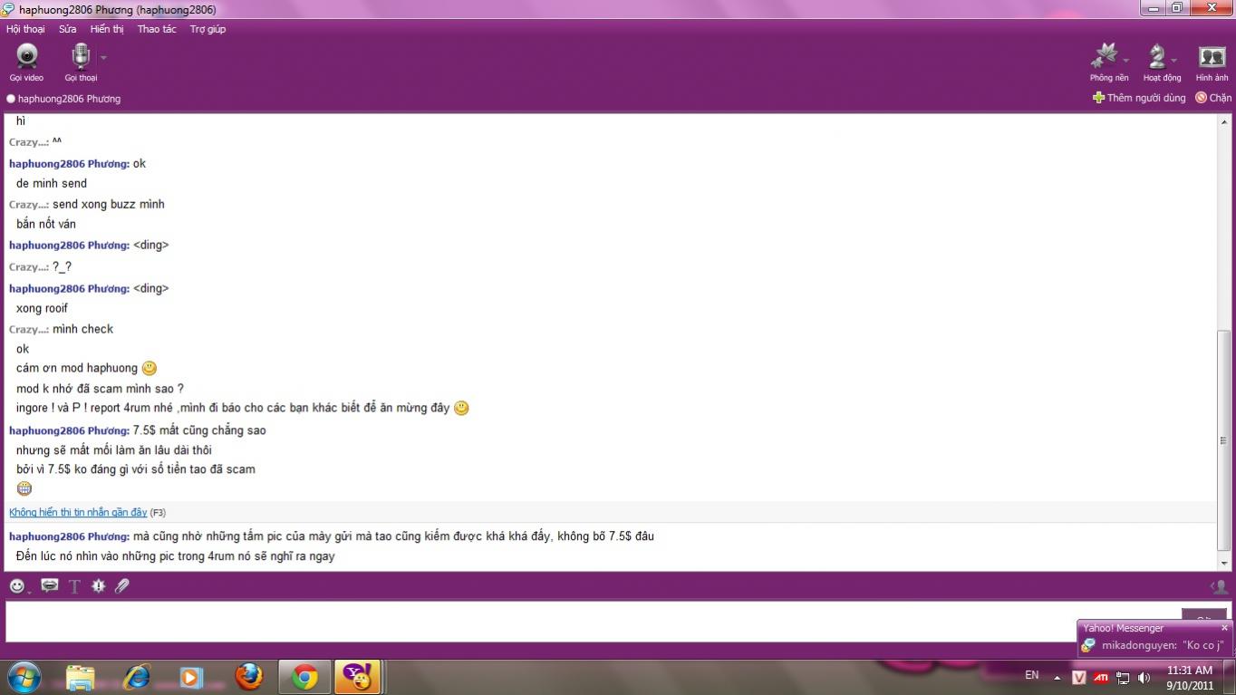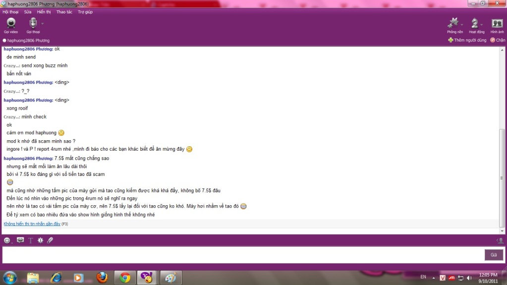 11h5p,1 cái nick yh là haphuong2806 đã pm và hỏi mua id của mình,hẳn các bạn biết chứ ? còn mình thì dù có mất trí ra sao cũng không thể quên đc cái nick yh này.Quãng thời gian đầu đời gõ captcha và kiếm tiền từ captcha là dự án qlink của chị ấy ! mà chắc chị ấy cũng chẳng nhớ mình là ai ^^:binhsua10: bù lại đc 1 nửa số tiền chị ấy đã scam mình :binhsua166: