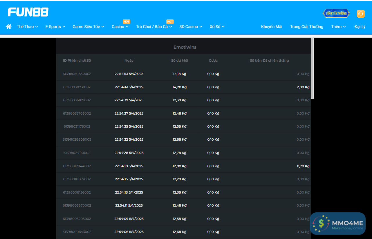 + Yêu cầu: cung cấp tài khoản/ email đăng kí của bạn tại FUN88 và gửi hình chụp màn hình HỆ SỐ NHÂN THẮNG hợp lệ tại Game EMOTIWINS tại NHÀ FUN88 để được xét thưởng.