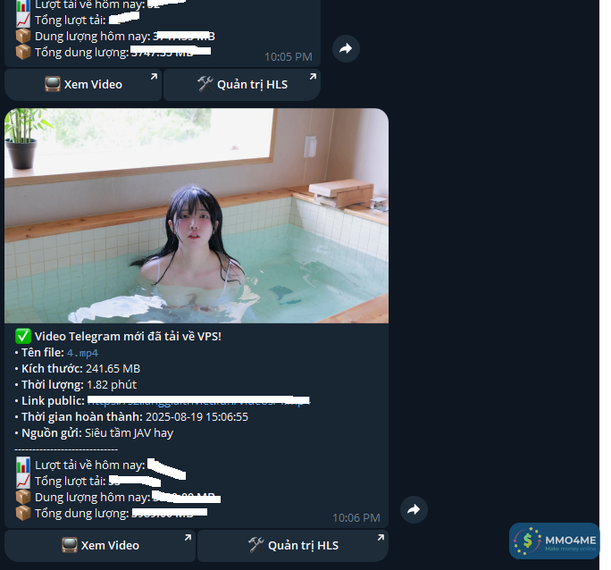 Trong Channel/Group khi có video mới > Bot sẽ tự reup và gửi lại thông tin file và gửi kết quả về admin tele/Bot tele (bypass ads)
