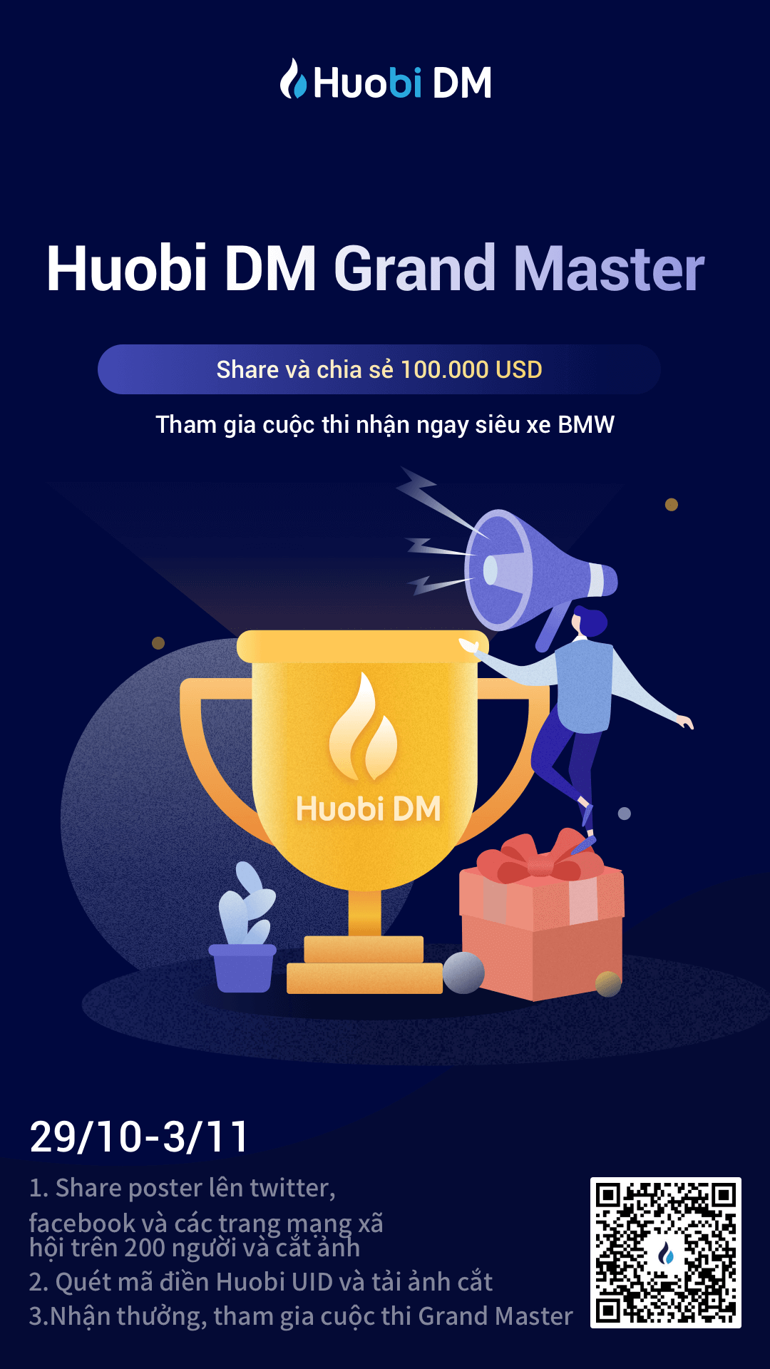 Airdrop Share poster chia sẻ 100000 USD với sàn Huobi