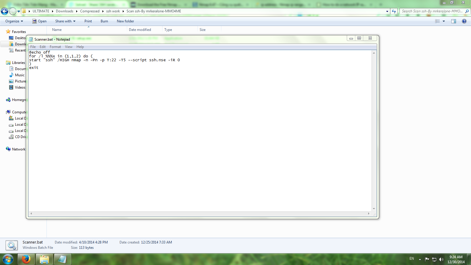 vào nmap, tạo 1 profile, dãy iprange của nước nào đế, cấu hình nó tí, port 22 save thành tập tin ssh.nse trong thư mục script... xong vào mở cái random scan và đợi.............