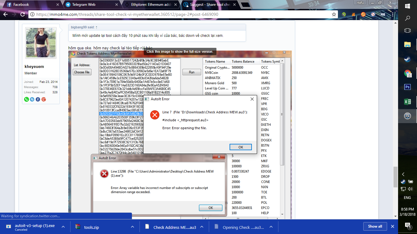 check cho nhiều ví mà bác. @@ ủng hộ bác 1 view trafficcheck thì vào thằng ví mà xem, ko thì vào https://ethplorer.io/ chứ tool tiếc gì