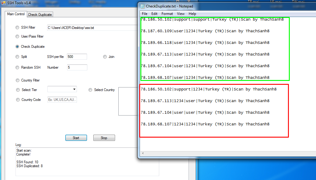 Nhưng khi mình đổi user và pass của các con ssh Màu đỏ thì tool lọc ra không được