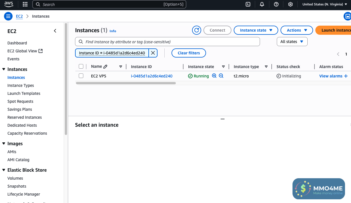 login sẵn tại AWS Lightsail, bấm qua link EC2 hoặc vào Console Home tìm EC2