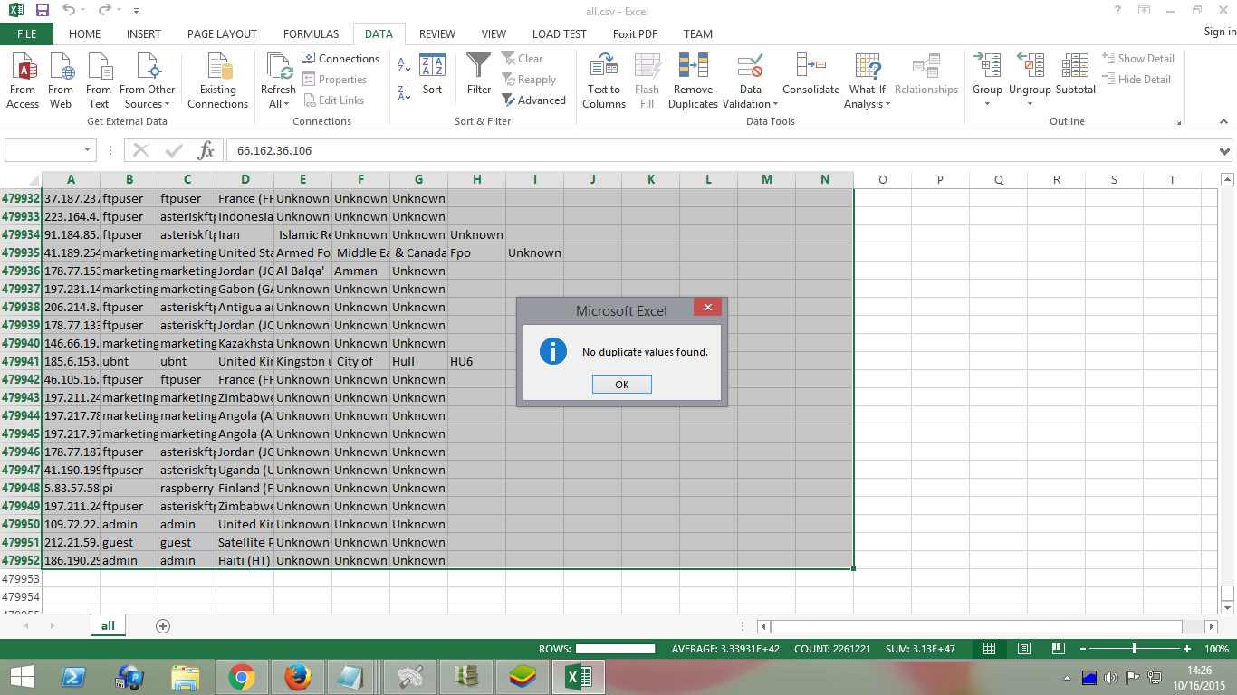Ễxcel thao tác file gần 500k ssh vẫn rất ngon về check trùng, lọc theo nước.... :D :D :D