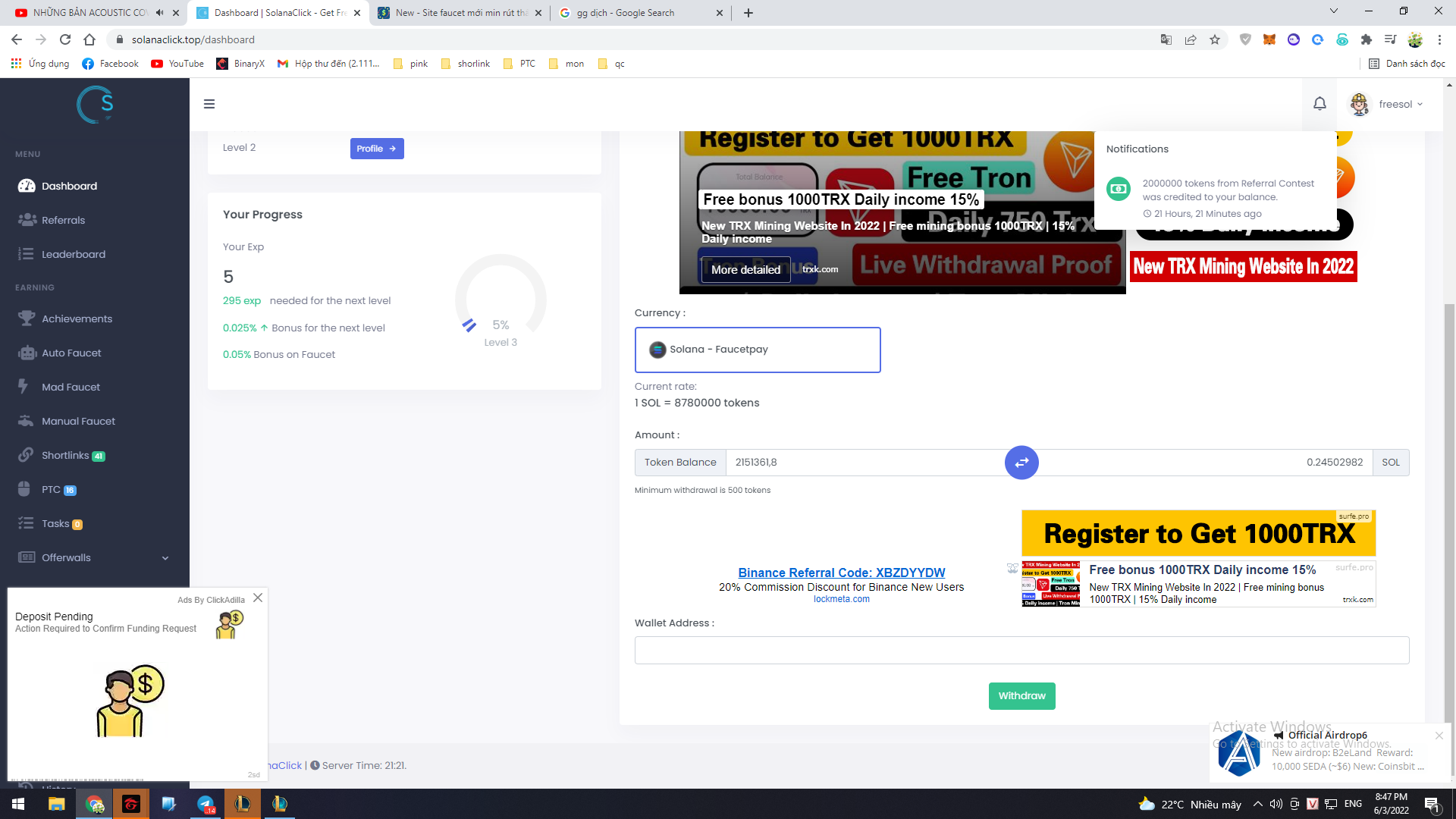 ok bác, gì chứ bác mà check site thì uy tín rồi, hôm trc lang thang tìm faucet thì thấy thằng này min thấp ai ngờ trúng ngay quả admin uy tín. Bào tới thôie biết thằng admin nó ptrien nhieu site r.site nào cũng 30-40k member .site này tưởng lai ptrien lâu dài đấy.