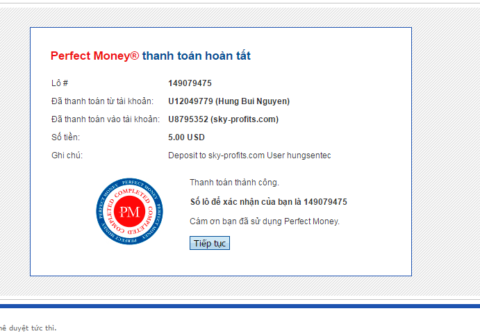 Giao dịch của 0.25 USD đến tài khoản U10253714 đã được hoàn tất thành công.